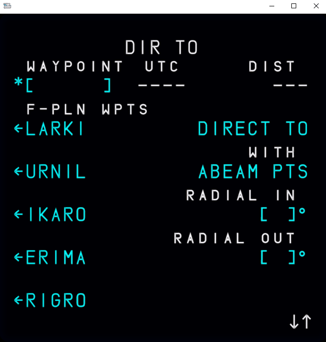 It is important to note that currently we are simulating the Thales version of the DIR TO page on our MCDU. We intend to change this at a later time to the Honeywell version to be in line with the rest of our implementation.